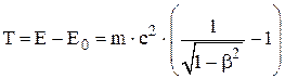 Выражения для полной и кинетической энергии релятивистской частицы имеют вид:
