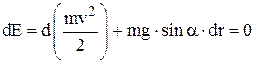 Составляющая силы тяжести, нормальная к направлению движения, работу не совершает. Таким образом, dU = m × g × sin a dr.