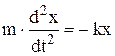 Если на конце пружины закреплена масса m и пружина характеризуется жесткостью k, то при смещении массы на расстояние x возникает возвращающая упругая сила F = – k×x. Уравнение колебаний массы, полученное из второго закона Ньютона, в этом случае имеет вид: