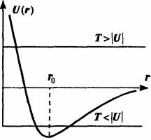 Эта кривая отвечает взаимодействию частицы с полем, которое приводит к притяжению частицы на больших расстояниях (r > r0) и к отталкиванию на малых (r < r0).