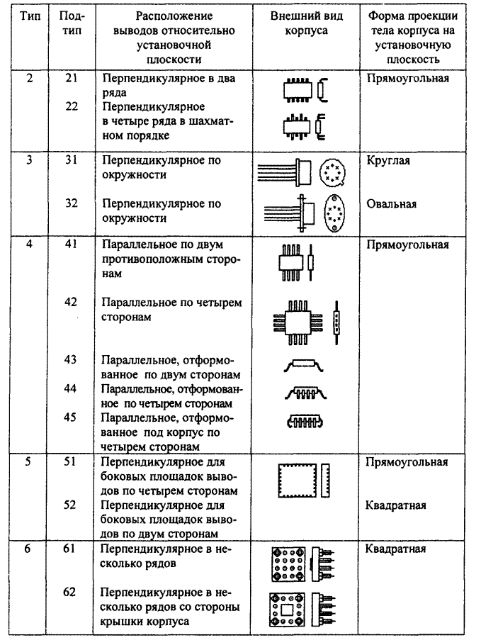 Таблица 1. Типы и подтипы корпусов микросхем
