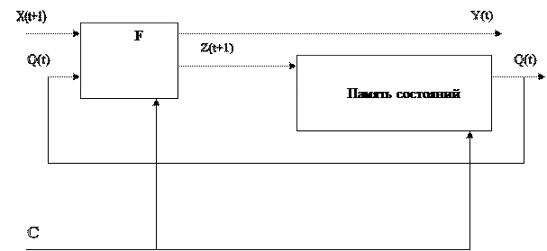 1.6 Совокупность воздействий на входы блока F образуется набором входных двоичных переменных и набором двоичных переменных Q(t), снимаемых с выходов элементарных ячеек памяти.