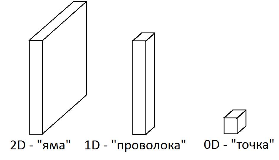 | наноструктура | Размерность делокализации | Размерность локализации |
