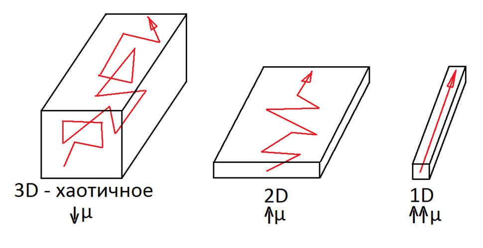 | Квантовая яма | 2 (x, z) | 1 (y) |