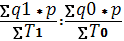 Выработка продукции в единицу времени измеряется соотношением объема произведенной продукции (q) и затратами рабочего времени(T).