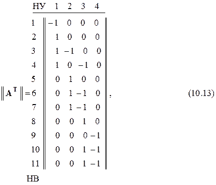 (10.18) путём умножения матрицы "направленных" соединений ветвей с узлами