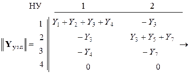 и запись их в виде матрицы-строки проводимостей ветвей: