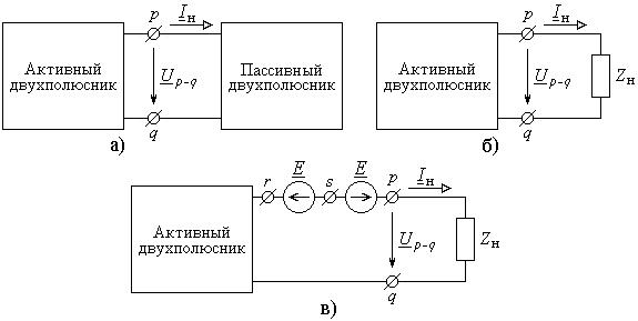 является активной, а по другую – пассивной. Представим эти части в виде активного и пассивного двухполюсников соответственно.