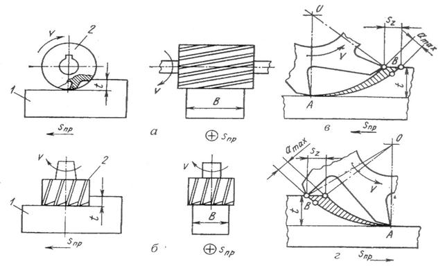 Цилиндрическое и торцовое фрезерование в зависимости от направления вращения фрезы и направления подачи заготовки можно осуществлять двумя способами: