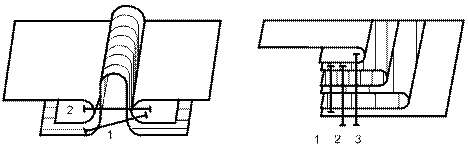 Рисунок 21 – Соединительные швы с кантом: а – с одним кантом,