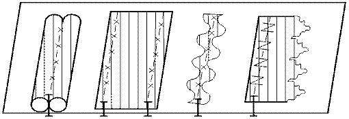 а – частичное закрепление складки,