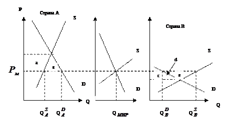 Мировая цена установится от равенства мирового спроса мировому предложению данного товара. Мировой объем торговли