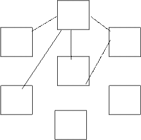 Организация информации в виде паутины, вероятно, наулучшим образом подходит для большинства случаев. В этой структуре страницы связаны друг с другом общим контекстом. К одной странице может вести несколько связей из каждого документа есть по крайней мере два входа. Связи иногда образуют круг (см. рис.4.3)