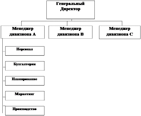 · Часто финансовые службы и управление персоналом могут оставаться организованными функционально, и менеджеры этих функций отчитываются непосредственно перед советом директоров, наряду с менеджерами дивизионов;