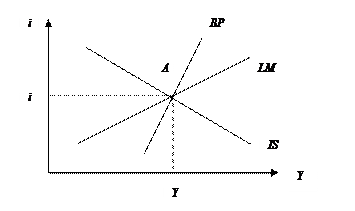 Равновесие в модели достигается в точке пересечения кривых IS, LM, и ВР ( рис. 3.6).