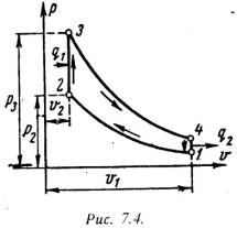 Для анализа теории тепловых машин термодинамика рассматривает идеальные циклы обратимые циклы. Диаграмма идеального процесса двигателя внутреннего сгорания показана на рис.7.4.