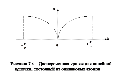 Из данного выражения следует дисперсионное соотношение для волн, распространяющихся в цепочке из одинаковых атомов: