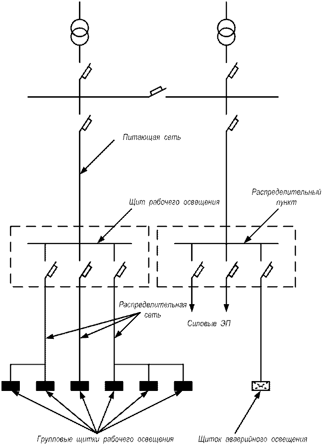 Схема питающей и распределительной сети освещения
