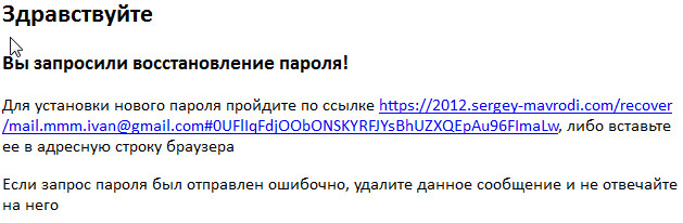 - 3.3. На почту придёт письмо, содержащее ссылку для восстановления пароля, по которой нужно будет перейти, придумать новый пароль, вписать его в соответствующие поля и нажать «Сменить