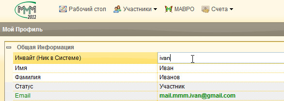Инвайт (оно же НИК в ЛК) — это слово, придуманное Вами для приглашения других участников в Систему. Инвайт — уникальное слово в Системе которые Вы придумываете сами. Сообщите свой инвайт другому участнику, для того, чтобы приглашенный Вами участник указал его при регистрации в ЛК. Тогда Вы будете получать бонусы от вкладов приглашенного Вами участника.