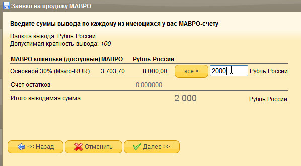 Далее, вам необходимо указать, на какое количество МАВРО Вы желаете запросить помощь: