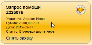 После того, как диспетчер обработает Вашу заявку на получение помощи и сформирует заявки на оказание помощи Вам от других участников, Вы увидите поручение следующего вида: