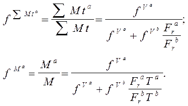 Положим, на анализируемом предприятии объем работ осваивается производственными участками "а" и "в", имеющими однотипные машины. Тогда взаимосвязь факторов, определяющих стоимость эксплуатируемого парка машин предприятия в целом и каждого производственного участка, может быть описана следующими моделями: