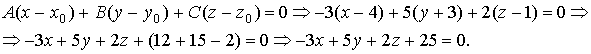 Ответ: -3 x + 5 y + 2 z + 25 = 0.