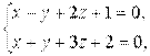 A1x+B1y+C1z+D1= 0 и A2x+B2y+C2z+D2 =0, где коэффициенты A1,B1,C1 и A2,B2,C2 не пропорциональны:
