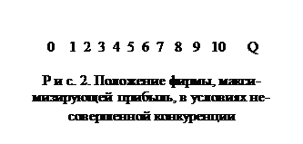 Также, как и в совершенной конкуренции, в условиях несовершенной конкуренции фирма, как в краткосрочном, так и в долгосрочном периодах может получать максимальную прибыль при таком объеме производства, когда предельный доход равен предельным издержкам, т.е. MR=MC (в нашем примере при объеме производства на уровне 6 ед. продукции, см. рис. 2).