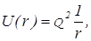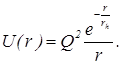 При каждом увеличении расстояния на rh числитель уменьшается в e раз. Этот факт и определяет большую скорость спадания U(r) с расстоянием. Множитель Q 2 называют константой взаимодействия. Он играет ту же роль, что и