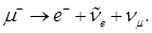 Значком “тильда – ~” обозначаются античастицы. В левой части электрический заряд равен минус единице (одному элементарному заряду), мюонный лептонный заряд равен единице. В правой части электрический заряд также равен минус единице. Электронные лептонные заряды электрона и электронного антинейтрино взаимно уничтожаются, так что в сумме получается нуль. Мюонное нейтрино дает равный единице мюоный лептонный заряд. Все законы сохранения выполняются.