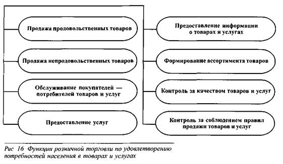 Основные функции розничной торговли, направленные на удовлетворение потребностей населения в товарах и услугах, представлены на рисунке 16.