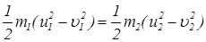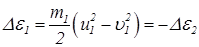 Изменение кинетической энергии первой частицы в результате столкновения равно минус изменению кинетической энергии второй частицы. Также равны изменения импульсов частиц: