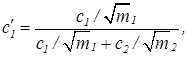 б) Подстановка значений c1, c2 и m1, m2 в формулу (41) дает: