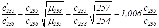 б) Метод прогонки газообразного фтористого урана UF6 через пористую перегородку используют для обогащения смеси легким изотопом урана 235U. Газ в сосуде состоит из молекул 235U19F6 и 238U19F6 (начальные концентрации этих молекул соответствуют естественной распространенности обоих изотопов урана в природе и равны c238=99,3% и c235=0,7%). Найдите отношение