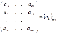 ) называются элементами матрицы (здесь первый индекс – номер строки а второй – номер столбца, на пересечении которых находится данный элемент).
