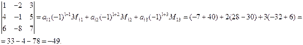 Пусть Δ – некоторый определитель третьего порядка. Сумма произведений алгебраических дополнений элементов какой-нибудь строки (столбца) на любые числа