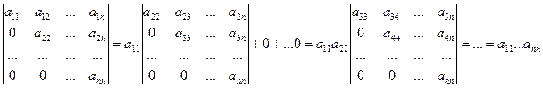Определитель треугольной матрицы равен произведению элементов главной диагонали.