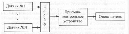 | Рис.6.1. Структура типовой системы охранной сигнализации |