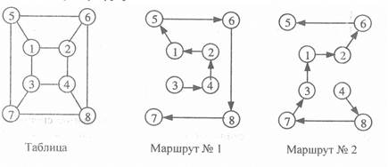 | Рис.11.6. Вариант 8-элементной таблицы и маршрутов Гамильтона |
