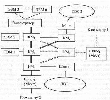 | Рис.12.1. Фрагмент распределенной компьютерной системы |