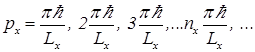 . В отличие от классического описания состояний частицы, квантово-механическое рассмотрение показывает, что проекции импульса могут принимать только дискретный ряд значений:
