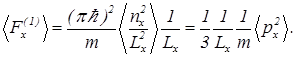 Верхний индекс “1” у силы давления означает, что это сила давления одной частицы. В состоянии термодинамического равновесия при тепловом взаимодействии частицы со стенкой и, через нее, с тепловым резервуаром происходит непрерывный переход с уровня на уровень. Давление флуктуирует. Среднее значение силы давления частицы на стенку равно
