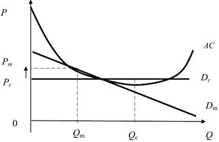 2) есть отрасли, где существование монополии необходимо и экономически оправдано. Это касается таких капиталоемких отраслей, как, например, энергетика. Существование двух или более энергетических структур в одном городе приведет к увеличению средних издержек и соответственно к росту цены.