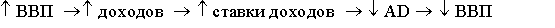 2. "Эффект вытеснения", суть которого заключается в вытеснении частных инвестиций государственными расходами: государство делает займы на финансовом рынке, взвинчивает процентную ставку. В результате снижается уровень частных инвестиций и совокупного предложения, растет инфляция.