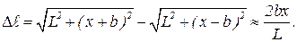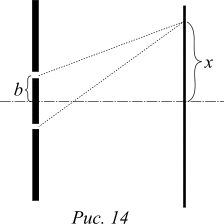 Задача 4. Через две щели, ширина каждой из которых меньше длины волны амплитуды вероятности l, пропускают пучок электронов. Электроны попадают на экран, расположенный на расстоянии L от щелей. Амплитуды попадания электрона в верхнюю и в нижнюю щели одинаковы. Рассмотрите ситуацию L>>l, b, x.
