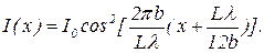 а) Полагая, что модули амплитуд вероятности электрону и из верхней и из нижней щелей попасть на экран в начало координат одинаковы и равны Y, определите частоту срабатывания детектора I, закрепленного на экране на расстоянии x от начала координат. Считайте, что частота срабатывания детектора, установленного в начале координат, равна I0. Полагайте также, что Y не зависит от x.