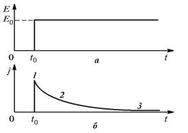 б – зависимость плотности тока от времени