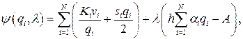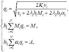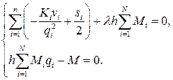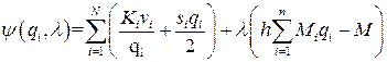 Для нахождения экстремума функции издержек (9.5) при ограничениях (9.7) на складские площади воспользуемся методом нахождения условного экстремума. Составим функцию Лагранжа: